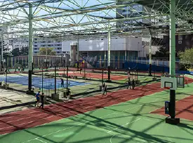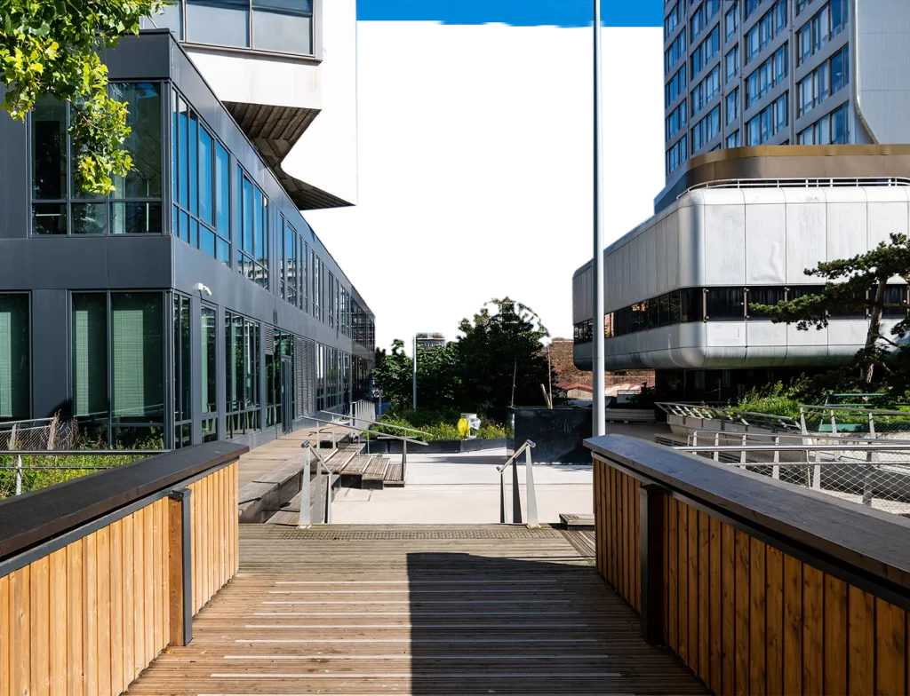 Cette “ville du futur” a depuis évolué pour s’adapter aux enjeux contemporains. Depuis 2010, 14 000 m² ont été végétalisés. La moitié de la surface de cette dalle est désormais allouée à la végétation, créant un mélange atypique entre béton et espaces verts.